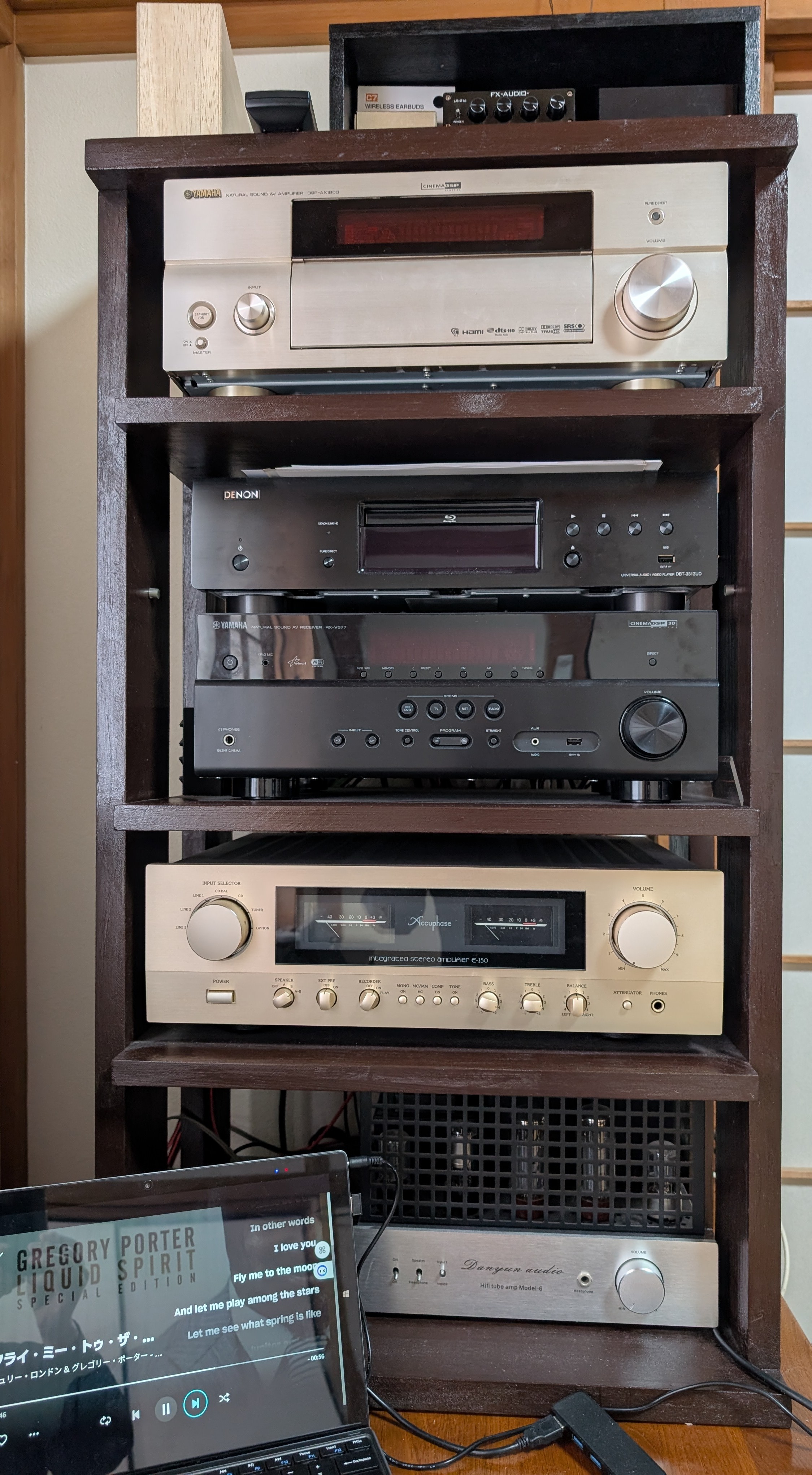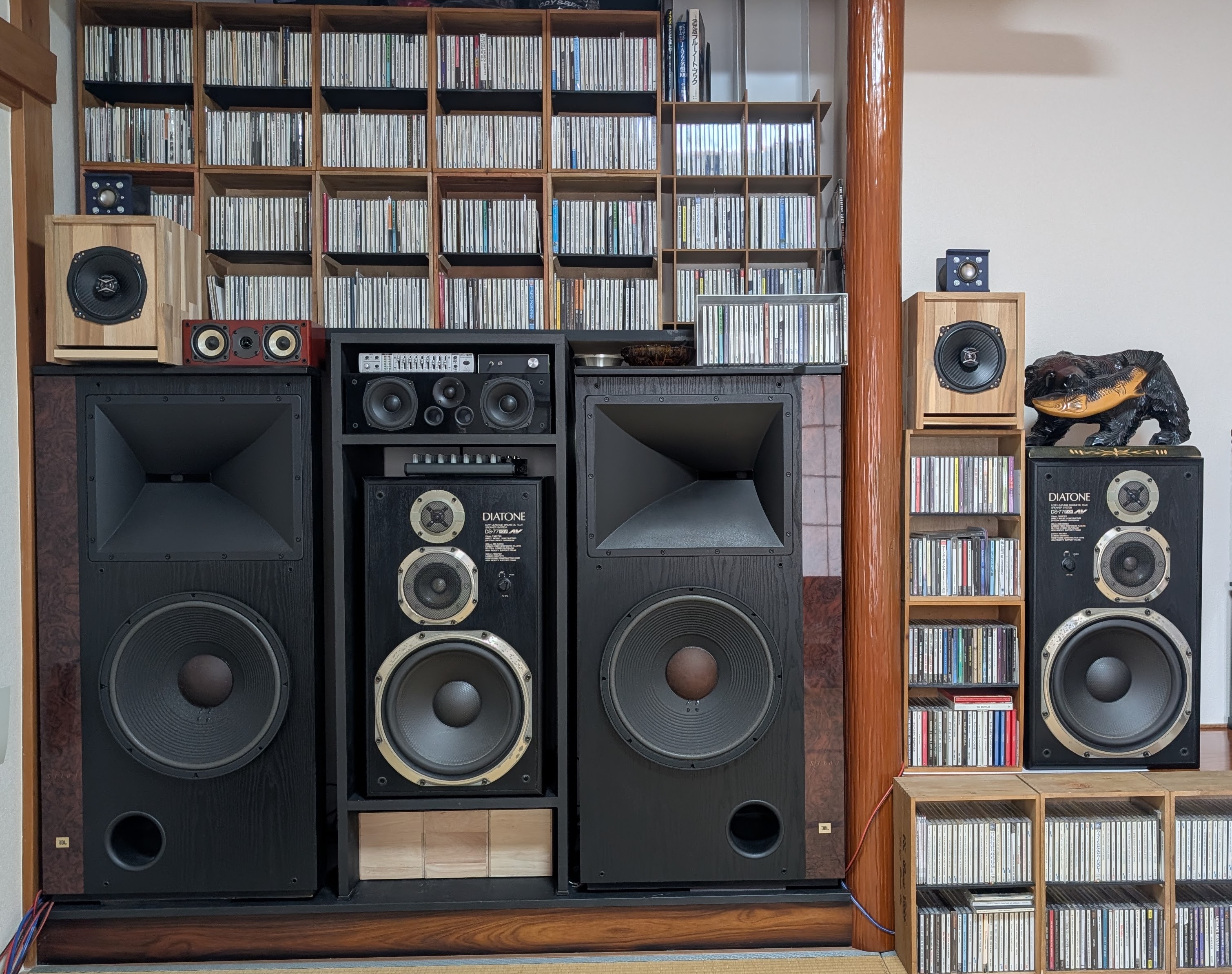 2チャンネル(バイアンプ)、7.1チャネルの構成です。スピーカは自作の物があります。