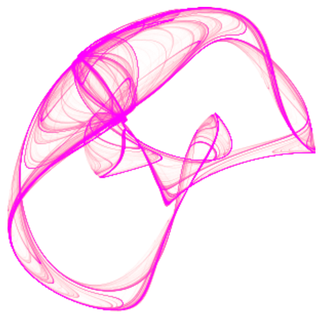 ピーター・デ・ヨング(Peter de Jong)のアトラクターとは、特定の数学的な更新規則(写像)を何度も繰り返すことで描かれる、複雑で美しい幾何学的な図形のことです。